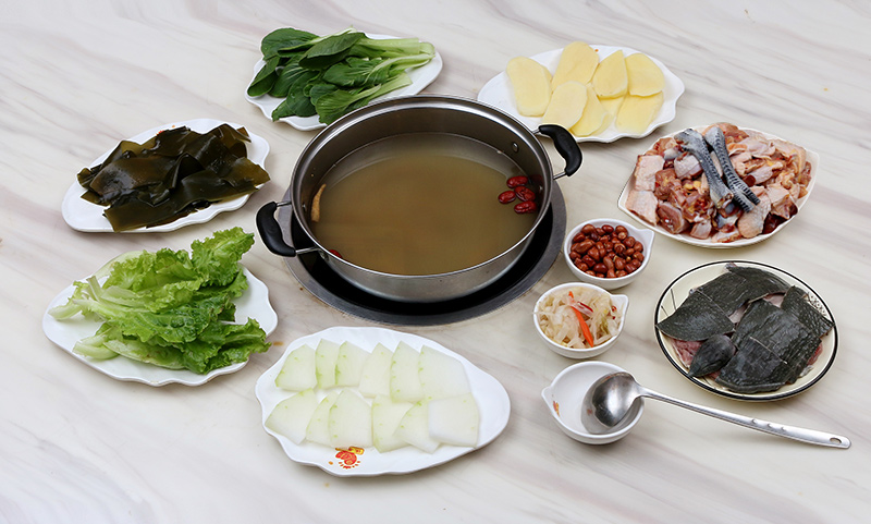 土雞、甲魚(yú)各一只,送蔬菜四盤(pán),小菜二碟、米飯隨意。